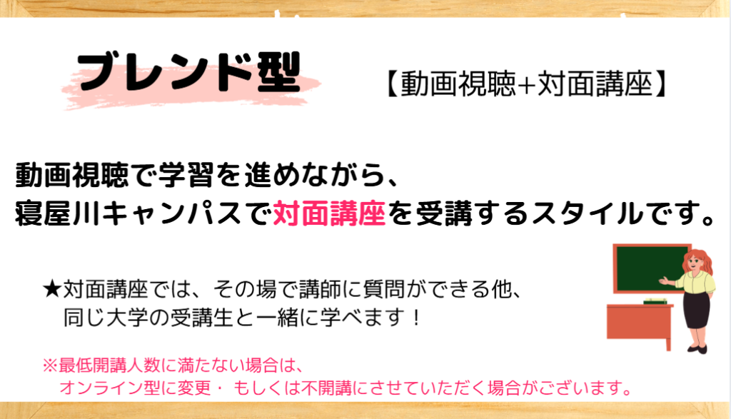 ※ブレンド型は、申込者が最少開講人数に達しない場合、不開講となる場合がございます。
