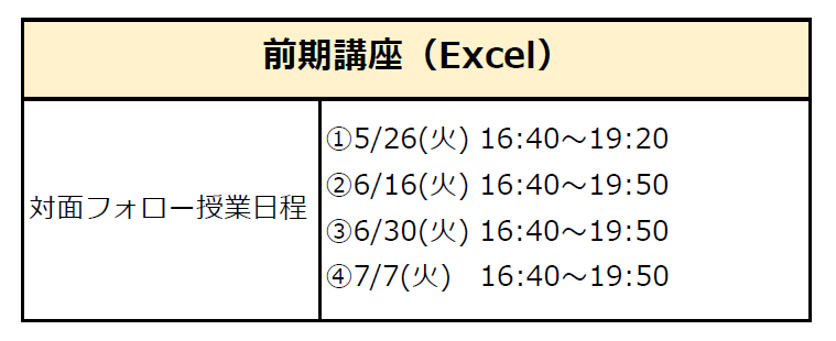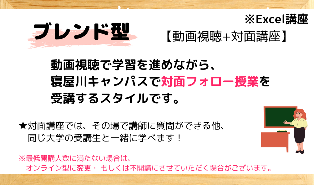 オンライン講座/ブレンド講座/対面講座※夏期Excelのみ