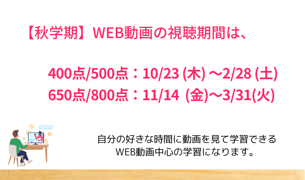 650コース・800コース:在校生・卒業生:29,700円 一般:32,070円